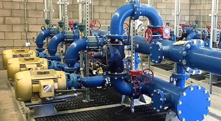 محطات الرفع والبوستر (Booster Stations): * تصميم وتنفيذ غرف المضخات للمجمعات السكنية باستخدام تكنولوجيا VFD لتوفير الطاقة وحماية المواسير من "المطرقة المائية".
