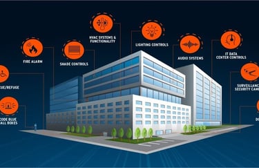 شبكات البيانات والاتصالات (Data & Voice Networks): تشمل هيكلة الكابلات (Structured Cabling)، الإنترنت، وأنظمة الهاتف المركزية (PBX).