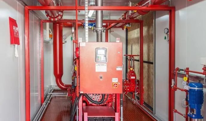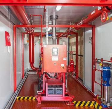 أنظمة مكافحة الحريق والإنذار: تنفيذ شبكات الرش الآلي (Sprinklers) وصناديق الحريق والربط مع أنظمة الإنذار المبكر.
