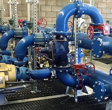 محطات الرفع والبوستر: تنفيذ غرف مضخات الحريق وتغذية المياه للمجمعات السكنية (Compounds) باستخدام لوحات تحكم ذكية (VFD)