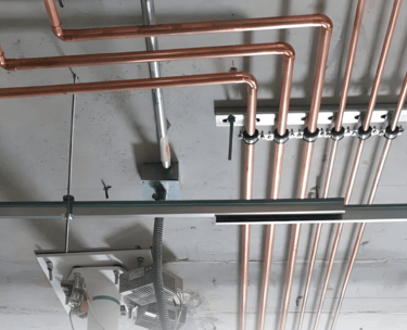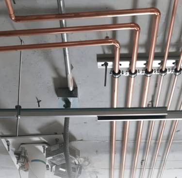 استخدام مواسير النحاس الطبي المعتمدة (Degreased Copper Pipes) الملحومة تحت غاز النيتروجين لمنع الأكسدة والشوائب.