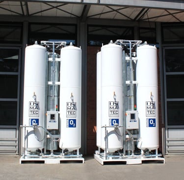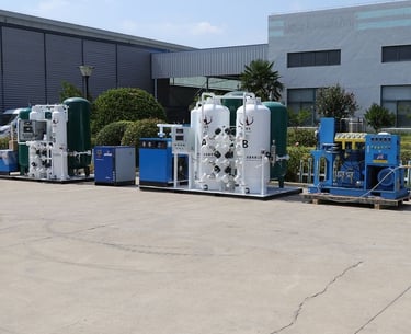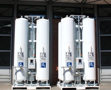 محطات الهواء المضغوط الطبي (Medical Air Plants): منظومات هواء نقي خالي من الزيوت والشوائب للتنفس الصناعي.