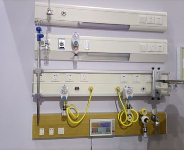 نحن متخصصون في تصميم وتوريد وتركيب شبكات الغازات الطبية المتكاملة، مع الالتزام الصارم بالأكواد العالمية مثل (HTM 02-01) و (NFPA 99)، لضمان تدفق الغازات الحيوية بأعلى درجات النقاء والأمان: